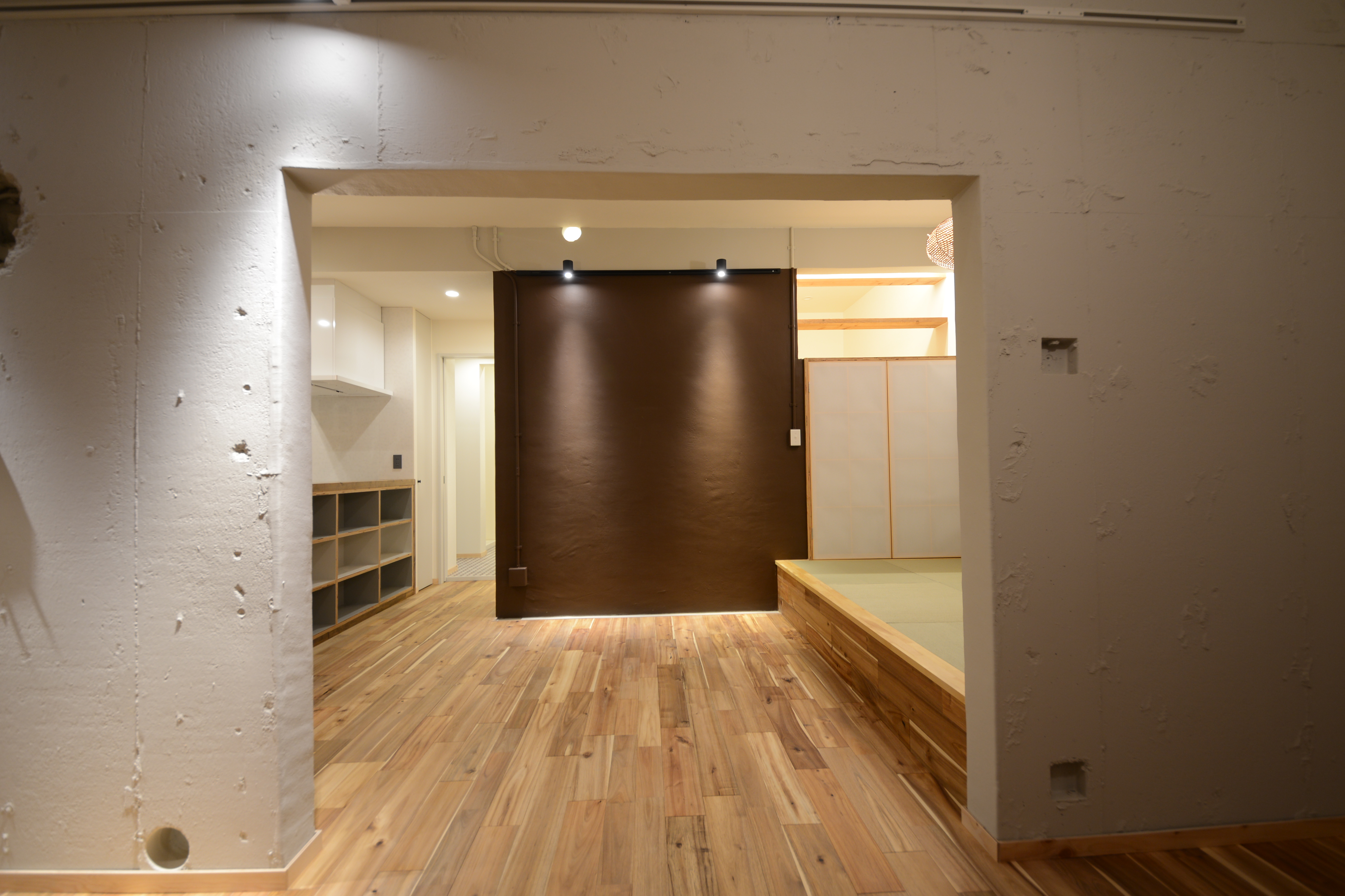 一般的にリノベーションに向かないとされる壁式構造のマンションですが、使用する部材や間取りの取り方によっては、とてもかっこいい空間をつくることができるポテンシャルを持っています。